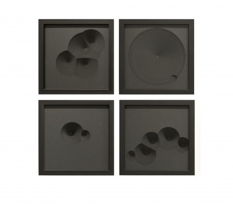 Materials: Paper. Location: Aggregate Space, Oakland, Ca. Statement: The tightly packed layers of black card stock could, from a distance, be mistaken for…